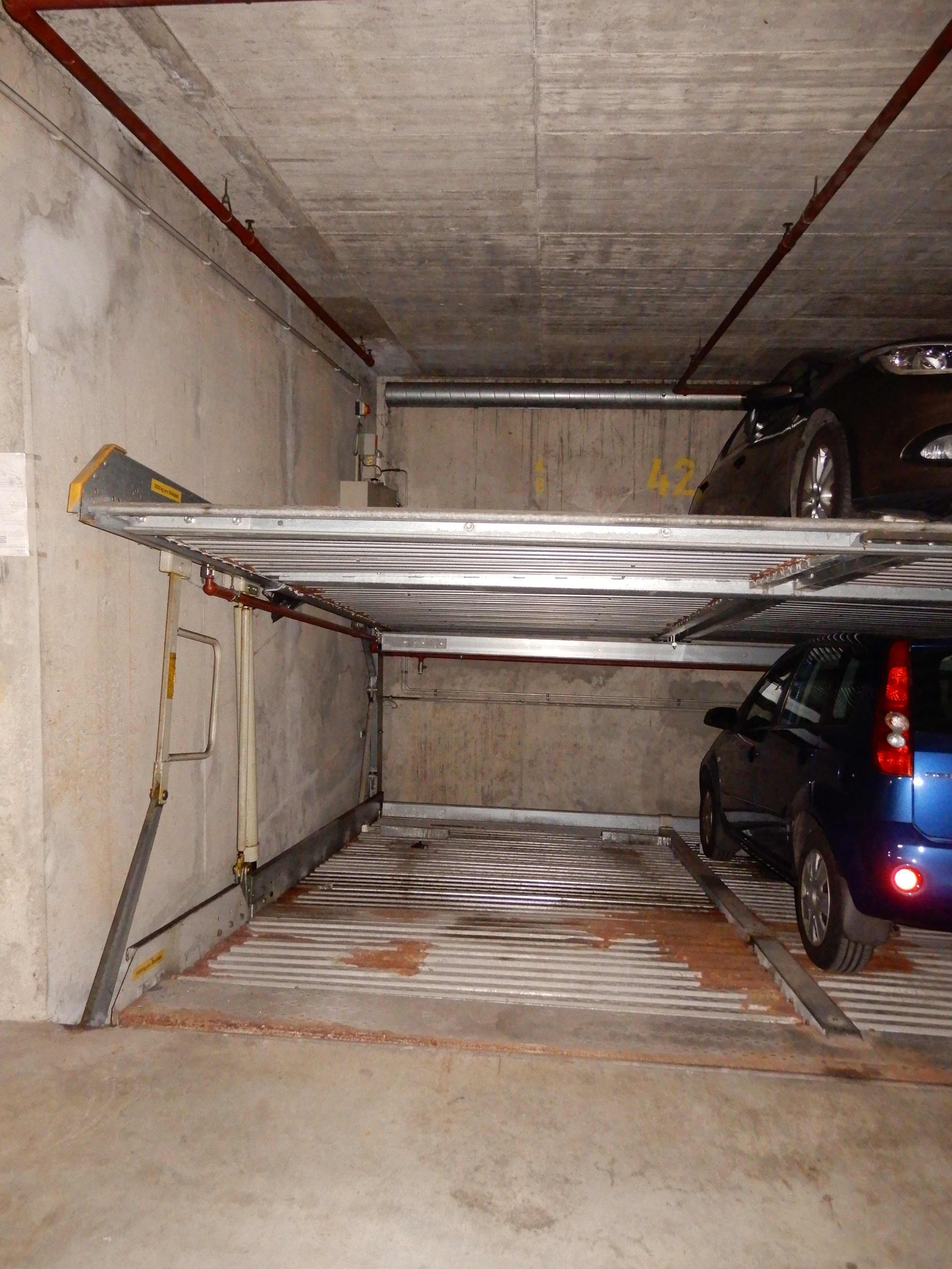 Zu der Einheit gehören 2 Tiefgaragenstellplätze in einem Doppelparker Nr. 42 links oben und unten, zu erwerben für je 15.000,--