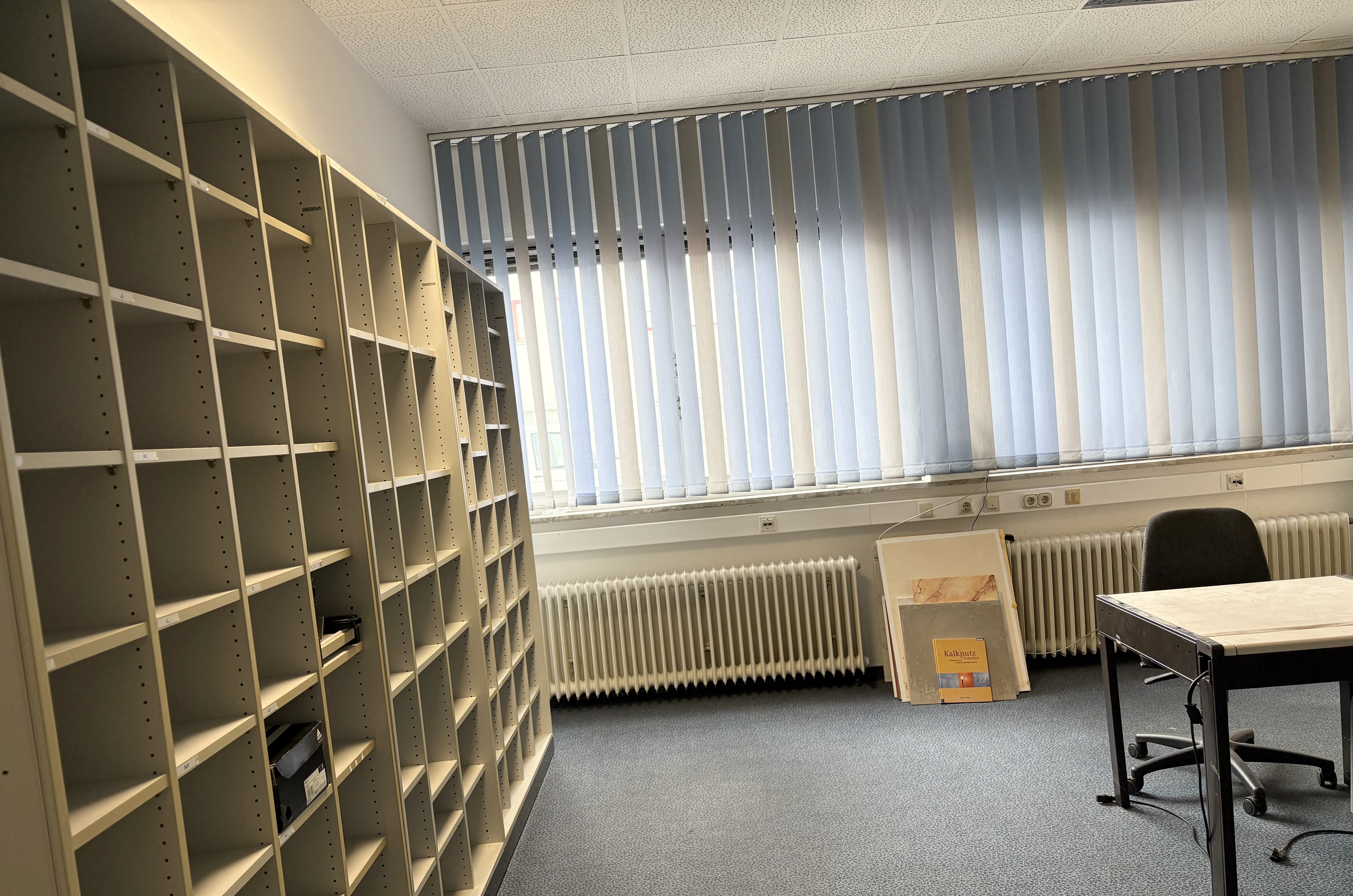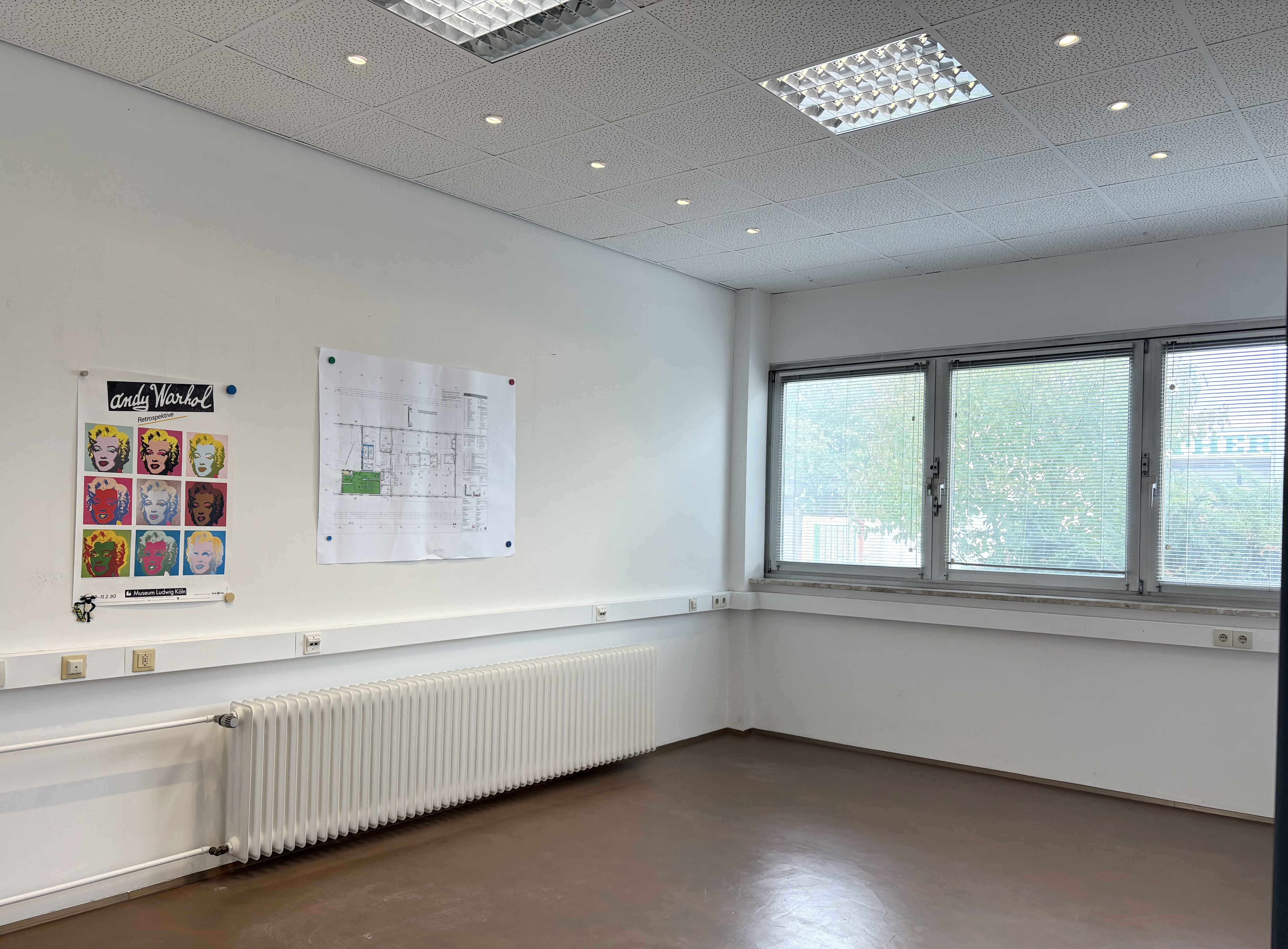 Praktisch ist eine komplette Wand in einem der Büroräume, die als Magnetwand ausgearbeitet ist.