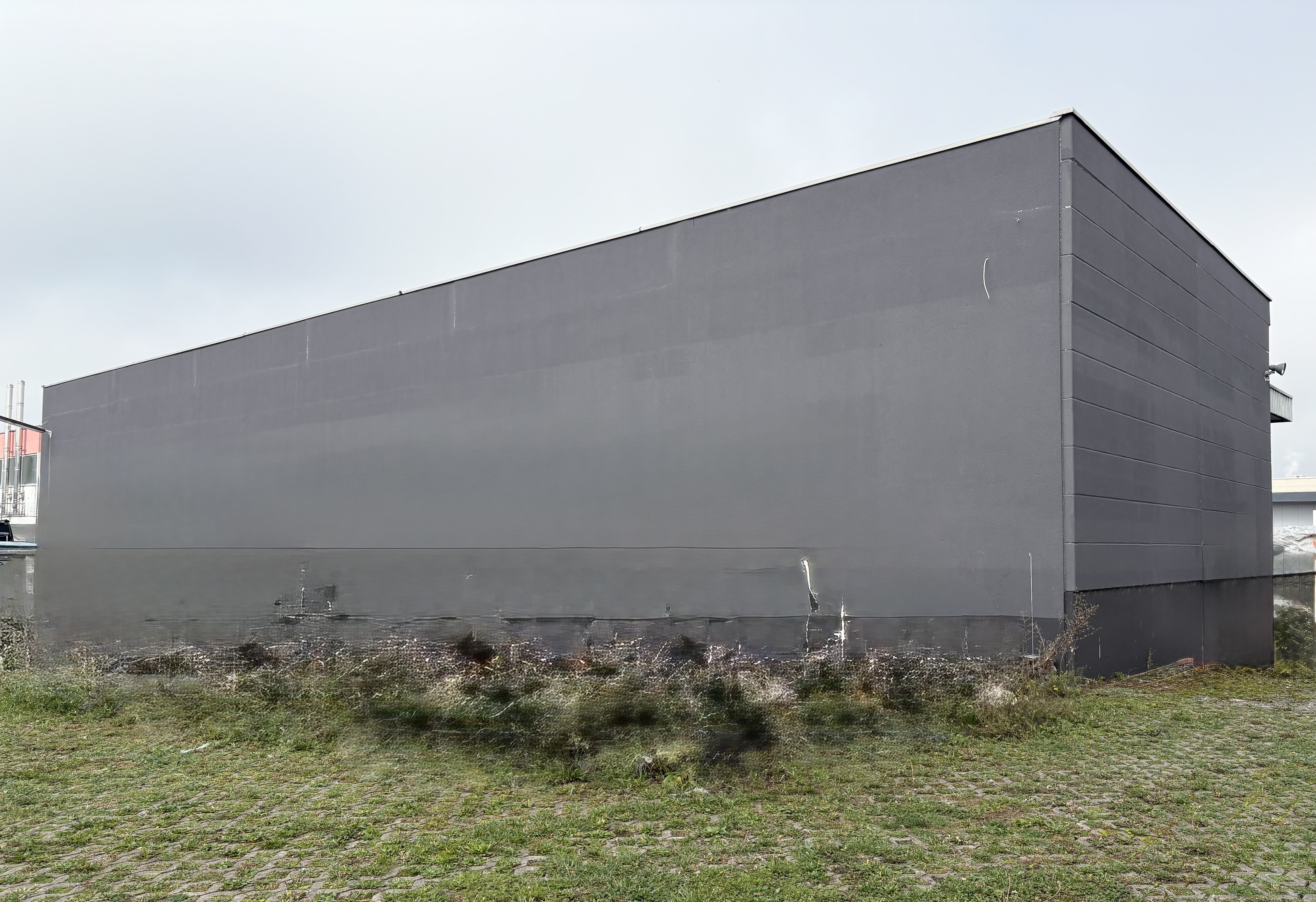 Die Halle wurde 1978 in Massivbauweise erbaut und ist in 2 Einheiten eingeteilt, die reine Lagerfläche beträgt ca. 300 qm, die Büroeinheit mit Teeküche, WCs, Dusche und Serverraum hat insgesamt 9 Räume mit einer Fläche von ca. 216 qm.