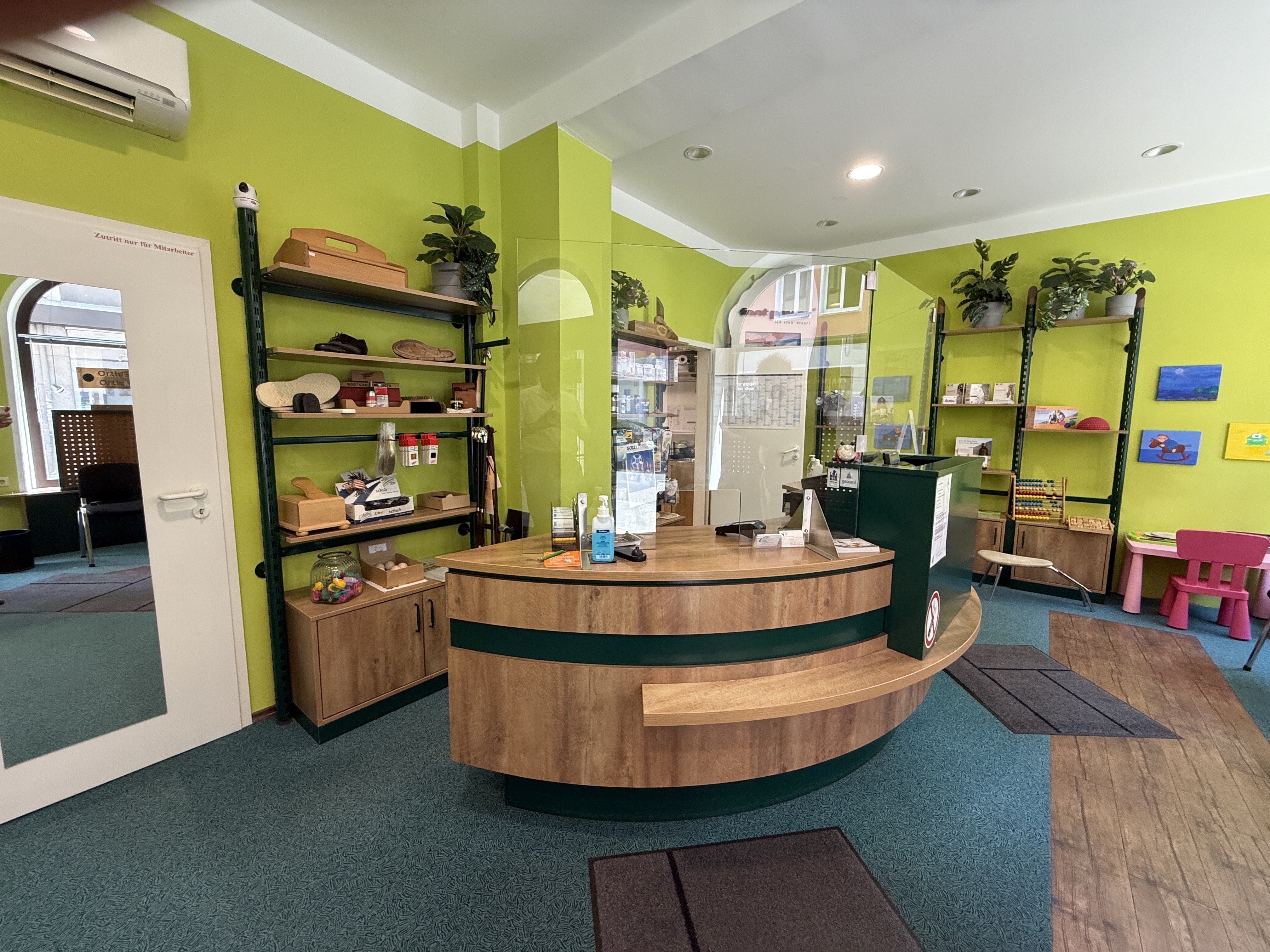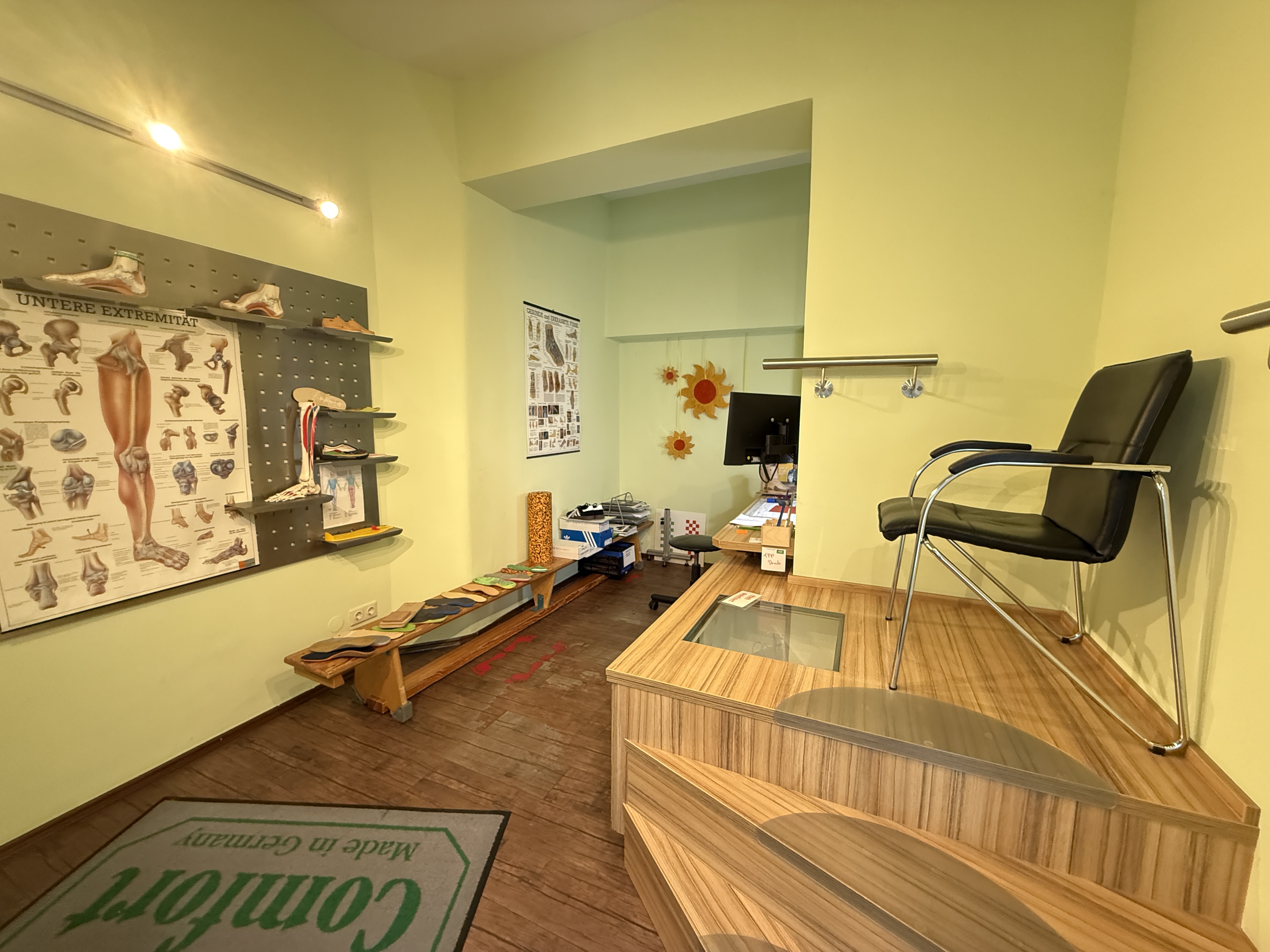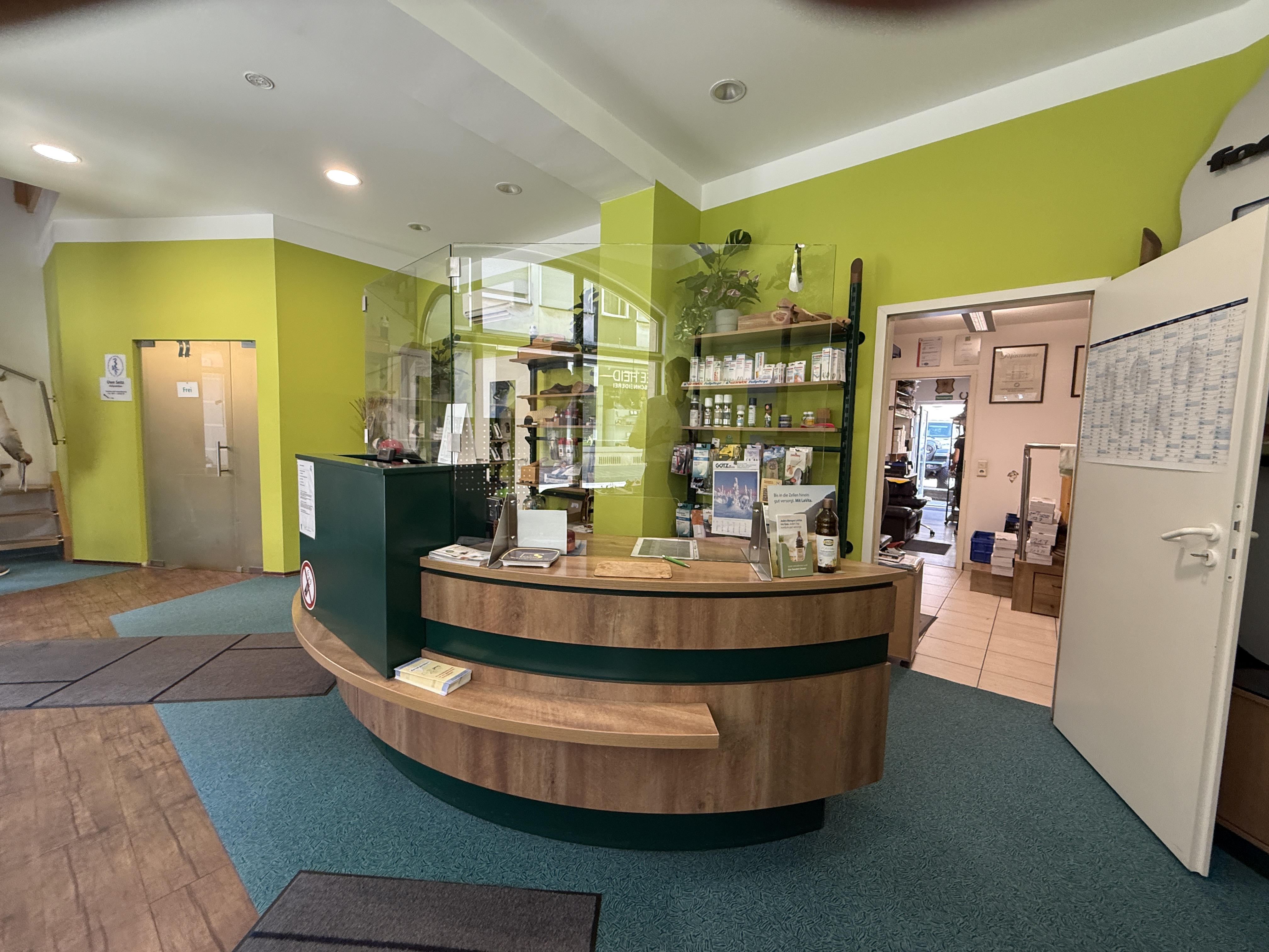 Seit dem ursprünglichen Baujahr des Hauses 1962 befindet sich in den Räumlichkeiten eine bekannte und gut eingeführte Orthopädieschuhmacherei. Bei Bedarf können Maschinen und Einrichtungsgegenstände aus diesem Bereich gerne vom Mieter übernommen werden.
