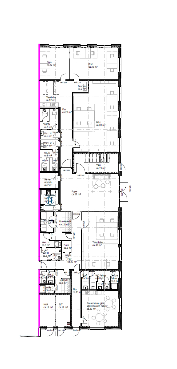 • Heizung: Fußbodenheizung mit Wärmepumpe • Fenster: Wärmedämmglas 3-fach ;Ug =0,6 W(m²K) • Klimatisierung: nur Belüftungsanlage aber keine Klimaanlage • Internet: Glasfaser bis 1.000 Mbit/s oder DSL vorhanden • Leitungen: das Büro ist komplett verkabelt, die Kabel liegen in Kabelkanälen