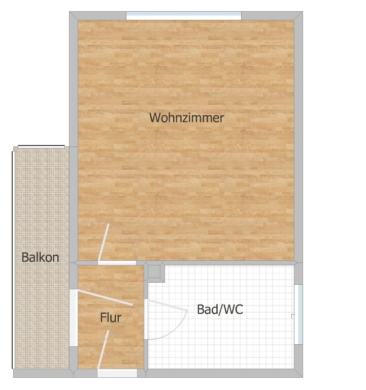 Die kleine 30 m² große Wohnung im EG hat einen Vinylboden, das Bad ist gefliest und mit WC und Badewanne ausgestattet.