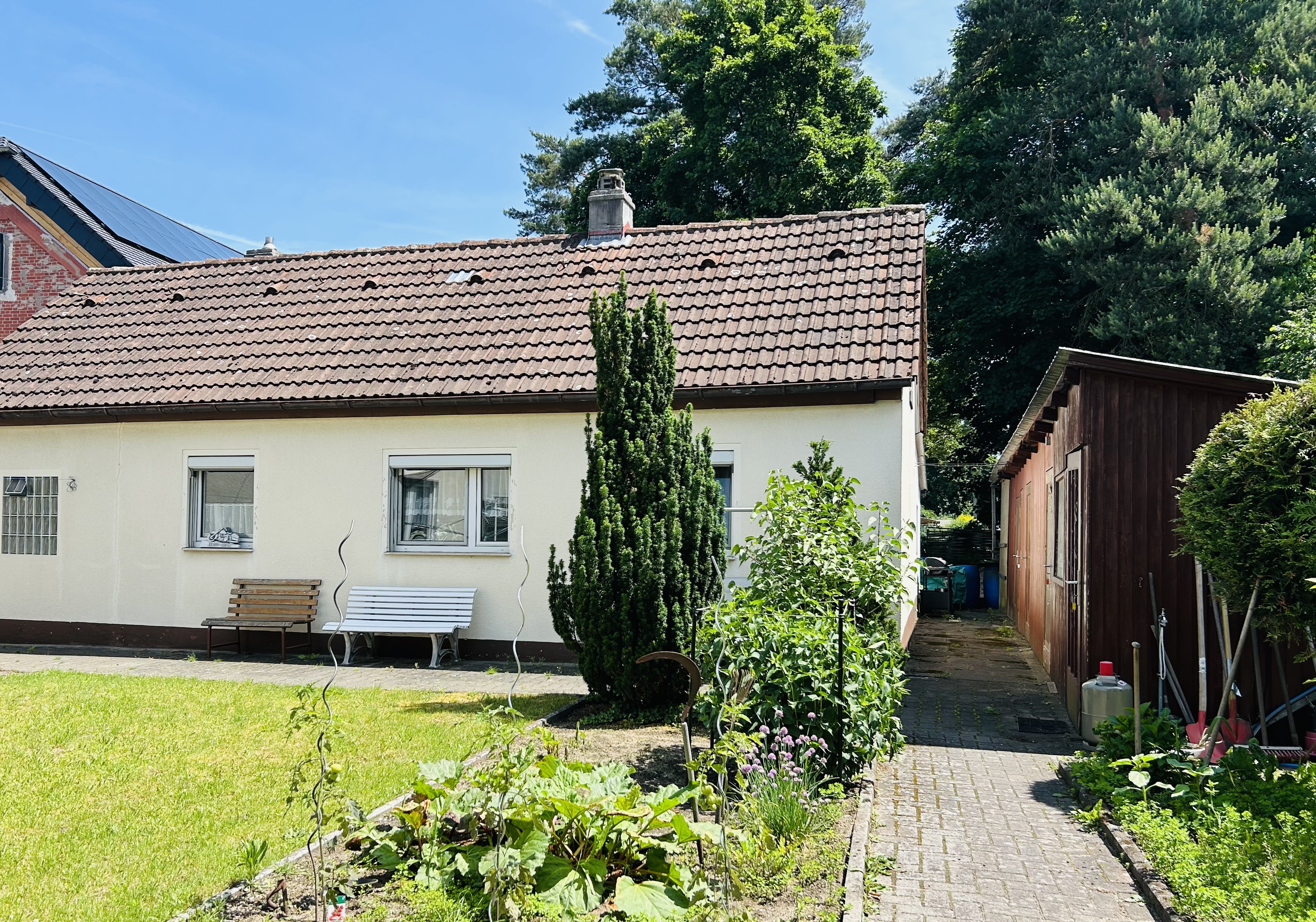 Rückseitig vom Hinterhaus befinden sich einige Schuppen, hier können Gartengeräte und Fahrräder bestens untergebracht werden.