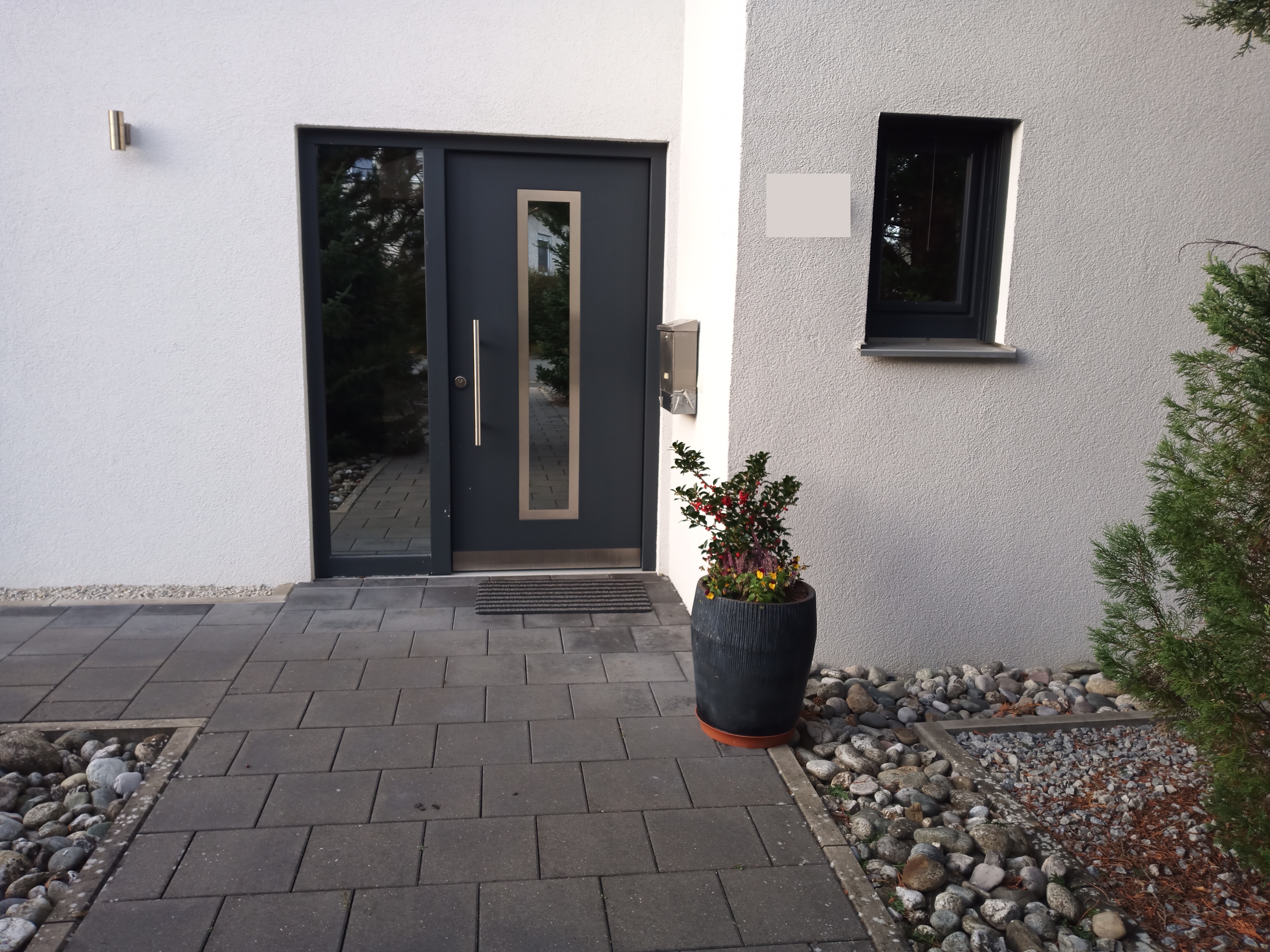 Um das Haus herum sind sehr breite gepflasterte Gehwege angelegt. Der sehr große Garten mit diversem Baumbestand erhöht das Wohnambiente. Das exklusive Haus ist in einem sehr gepflegten Zustand.