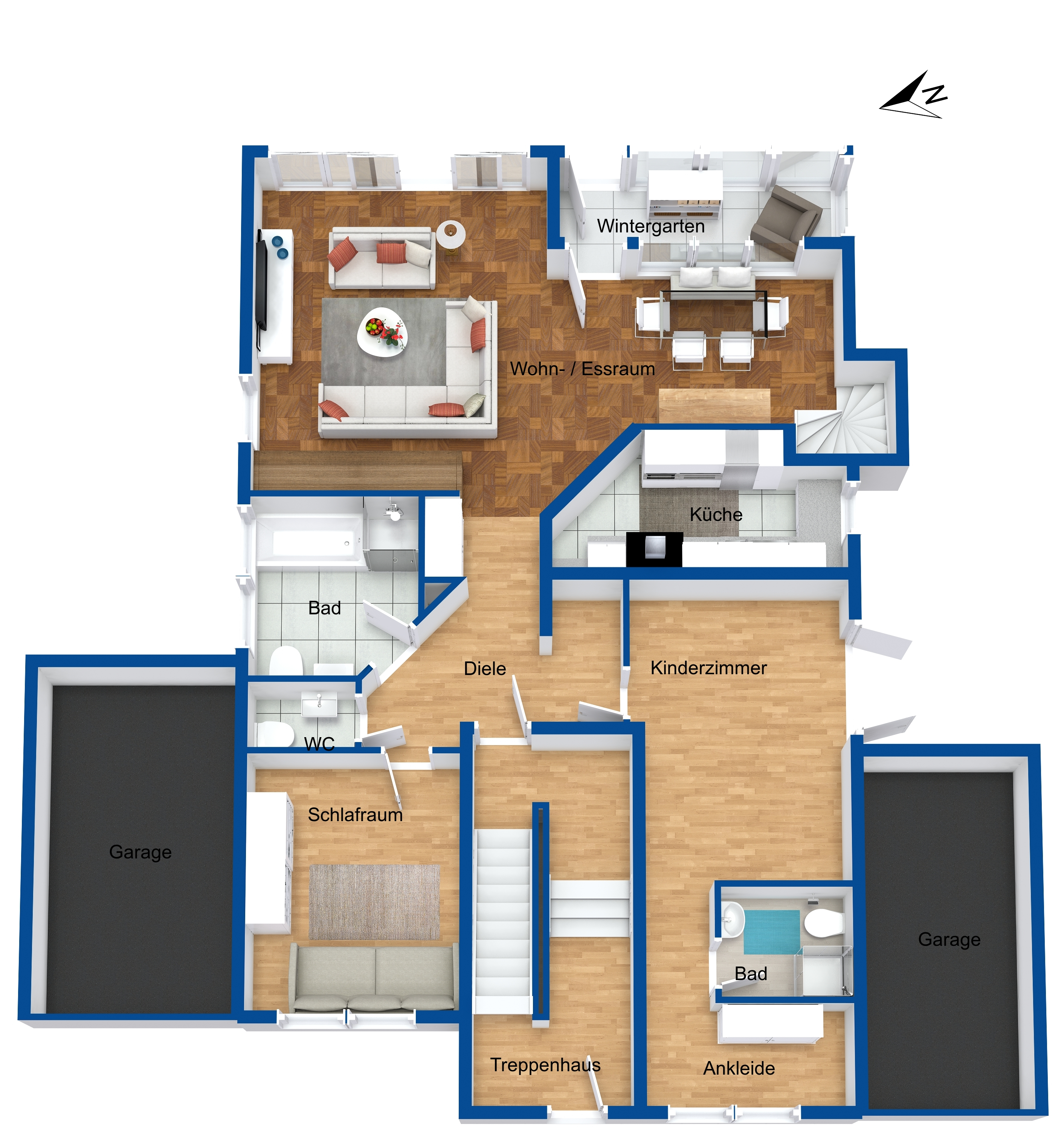 Das Haus bietet zwei Doppelgaragen und einen zusätzlichen Außenstellplatz, um Ihre Fahrzeuge sicher unterzubringen. Im Keller findet sich ausreichend Stauraum, für die jeweiligen Einheiten. Im Dachgeschoss liegen zwei Balkone, eine Loggia und eine Galerie vor, im Obergeschoss gibt es pro Wohnung einen Balkon. Zur Erdgeschosswohnung gehört eine Terrasse. Der angrenzende Garten lädt zu entspannten Stunden im Grünen ein, während der Wintergarten das ganze Jahr über einen herrlichen Ausblick bietet.