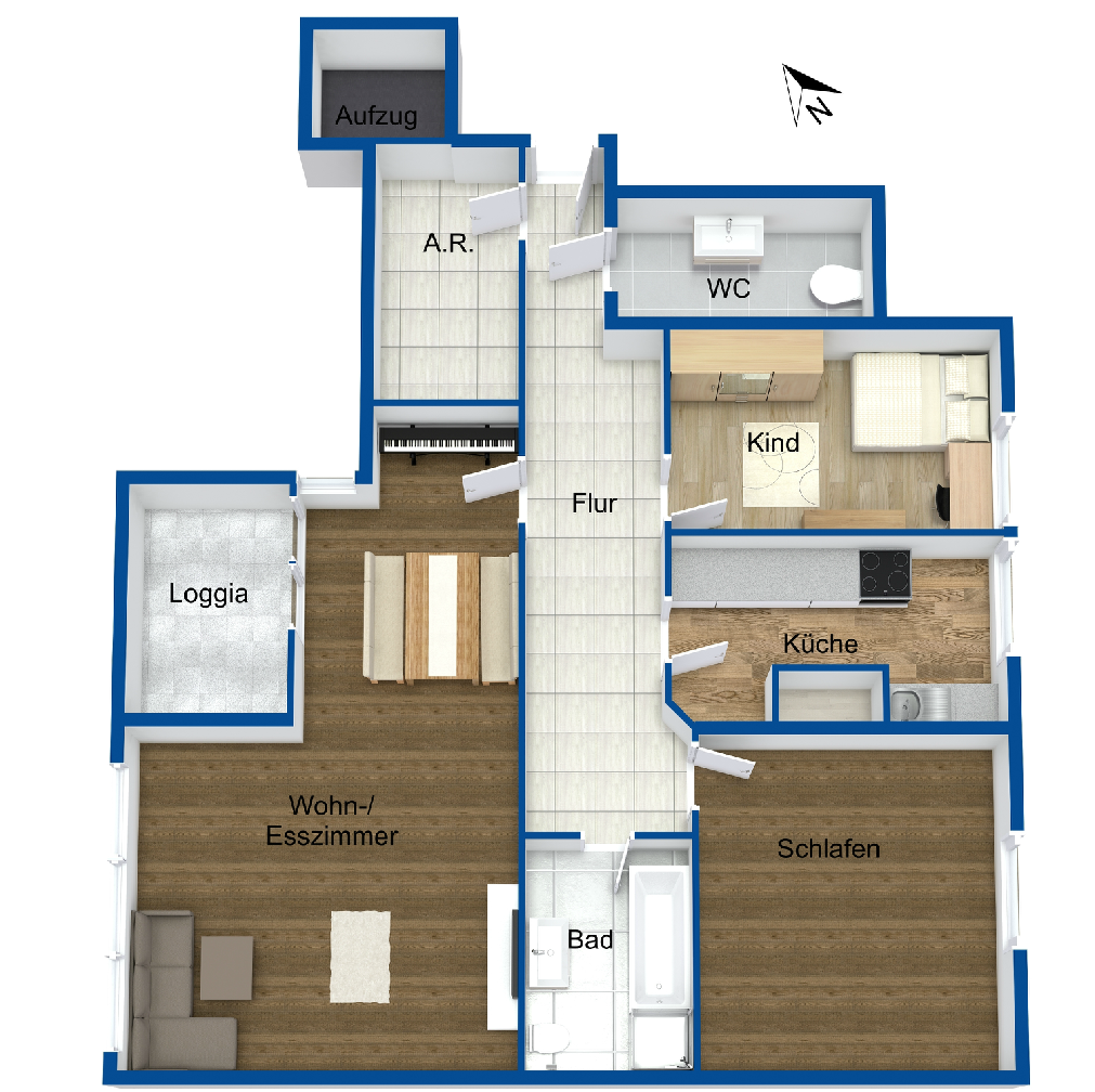 - Bodenbelag: Fliesen, Vinylboden