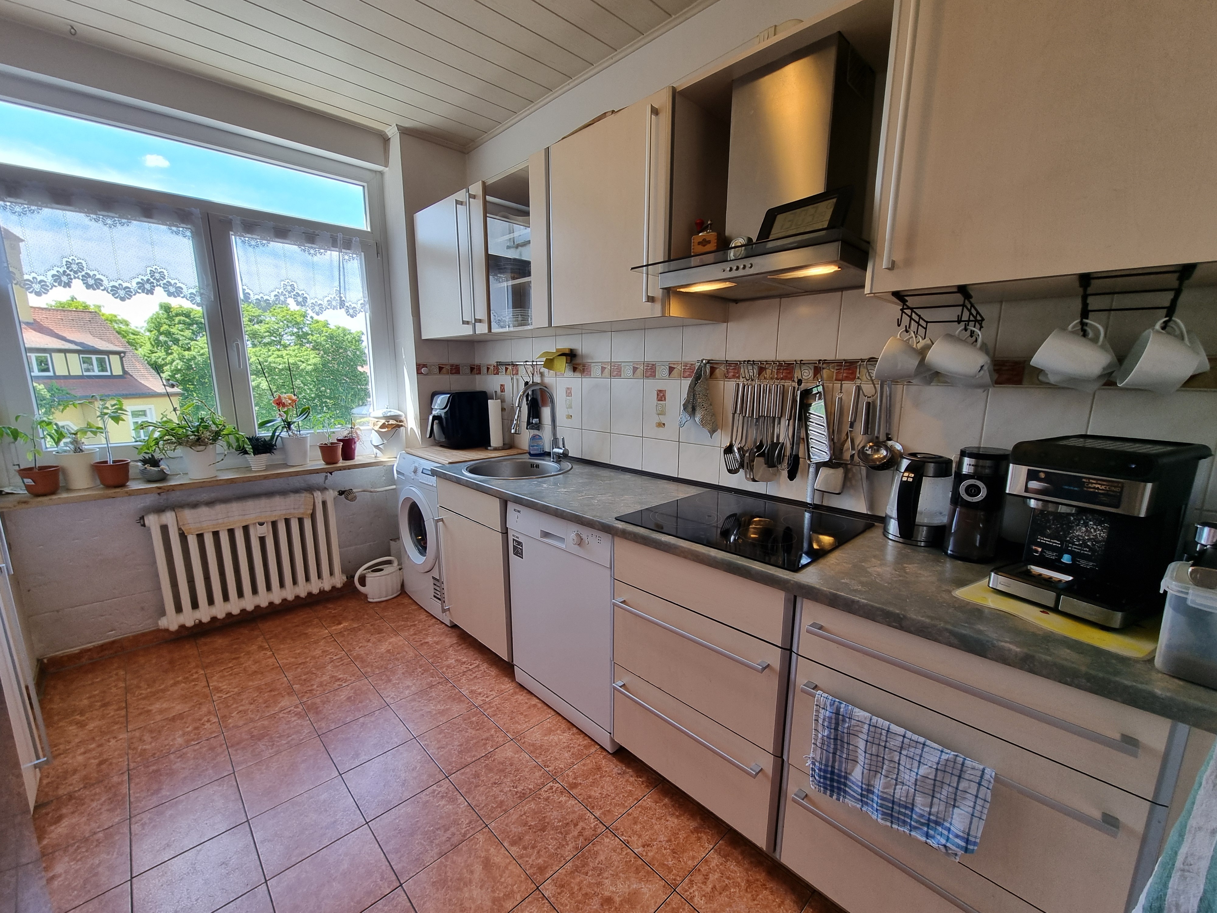 6 Parteien Haus 3. Obergeschoss (Dachgeschoss ohne Dachschräge) Aufzug bis in die halbe Etage 3 Zimmer Balkon nach Süden mit Blick über die Altstadt Holzdecken, außer in Flur und Bad Einbauküche ohne Kühlschrank und Waschmaschine innenliegendes Bad inkl. Wanne und Handtuchheizkörper Abstellraum gemauertes, großes Kellerabteil Dachboden (keine Stehhöhe) mit direktem Zugang aus der Wohnung Einzelgarage mit elektrischem Tor Möglichkeit zum Ausbau einer Dachterrasse laut Teilungserklärung vorhanden ein Großteil der Wohnungen sind von den Eigentümern selbst bewohnt 2-fach-verglaste Kunststofffenster inkl. Rollos Flachdach mit Kupfereindeckung (nachträglich) Dämmung der obersten Geschossdecke 2005: Renovierung des Badezimmers inkl. der Wasserleitungen 2005: Renovierung der gesamten Elektrik 2006: Ölheizung erneuert 2009: Garagentor neu inkl. elektrischer Öffnung 2016: Balkon erneuert inkl. Boden und Geländer 2017: Nachrüstung einer Markise 2019: Fliegengitter in Wohn- und Schlafzimmer 2021: Kompletterneuerung des Aufzugs inkl. Steuerung und Kabine