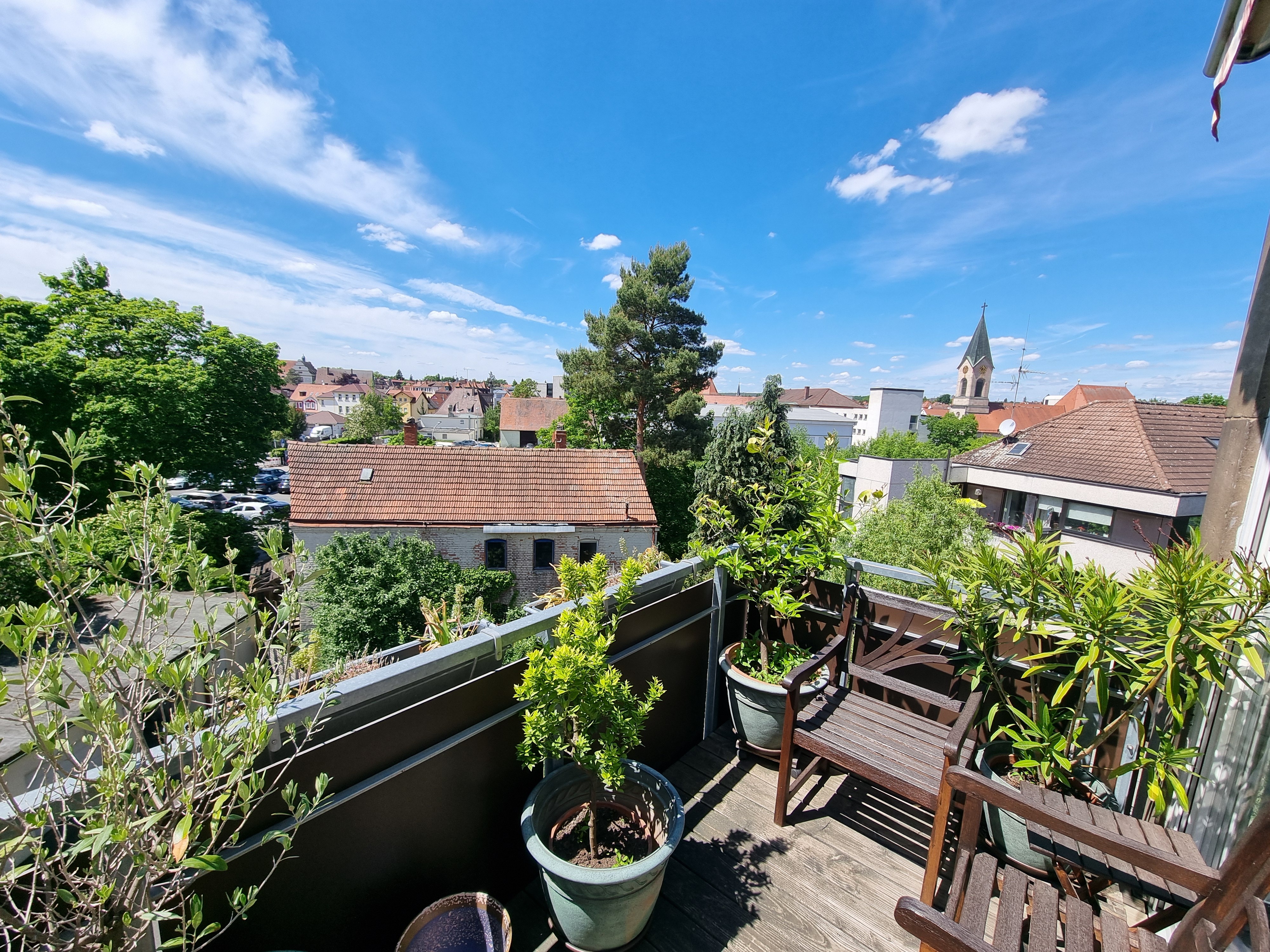Die charmante 3-Zimmer-Wohnung liegt im Dachgeschoss ohne Dachschräge eines Mehrfamilienhauses, ist per Aufzug erreichbar und überzeugt auf ganzer Linie. Vom Balkon aus kann man den Blick über die Dächer Schwabachs schweifen lassen und durch die Südausrichtung ganztägig Sonne tanken.
