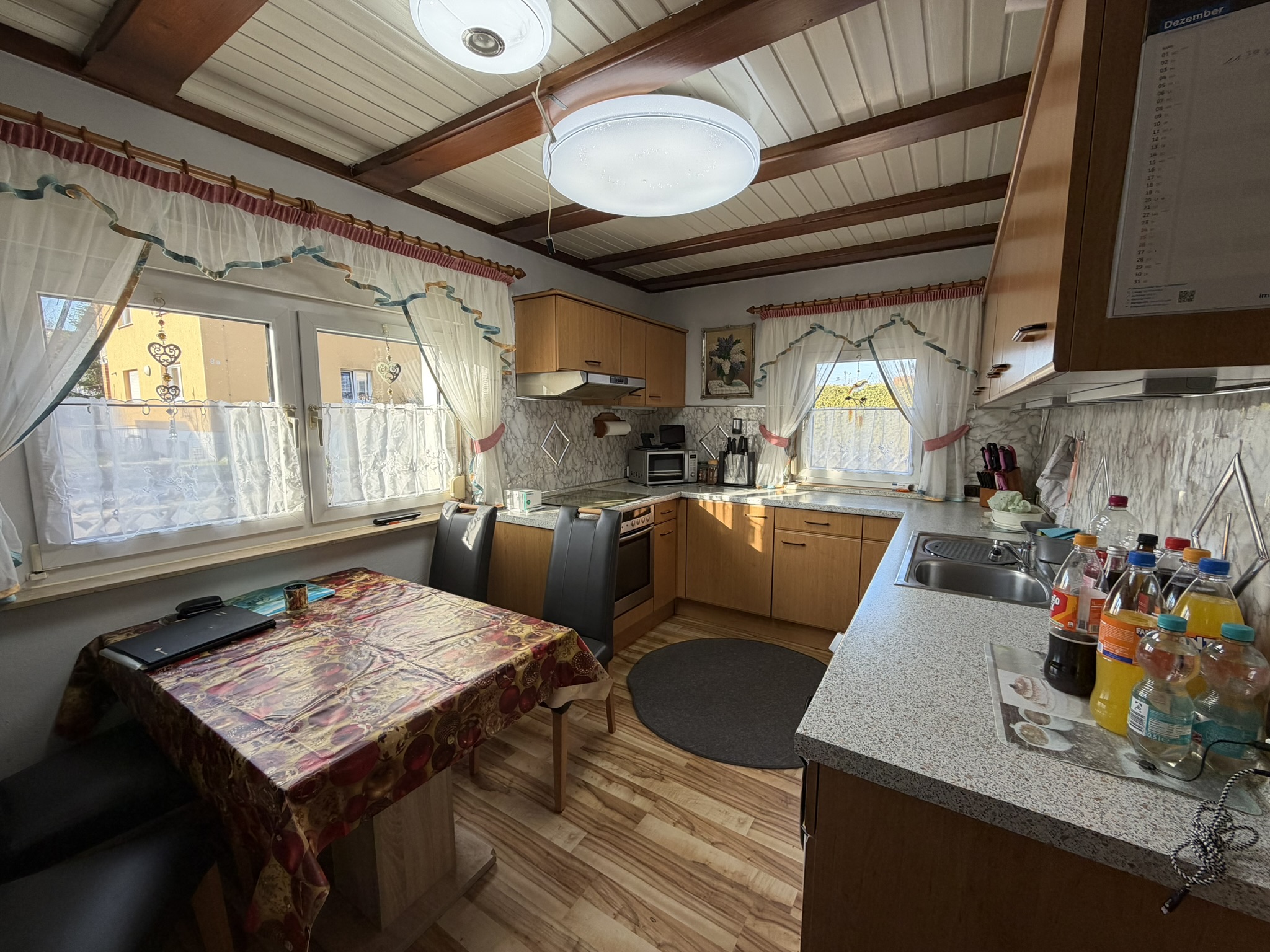 4-Zimmer-Wohnung ca. 126 m² Wohnfläche Gepflegter und heller Gesamtzustand Neue Laminatböden Einbauküche inklusive Tageslichtbad mit Badewanne Gasheizung Garage mit Werkstatt im Preis enthalten Großzügiger Garten (ca. 500 m²) zur alleinigen Nutzung mit gepflastertem Grillplatz und Gartenhaus
