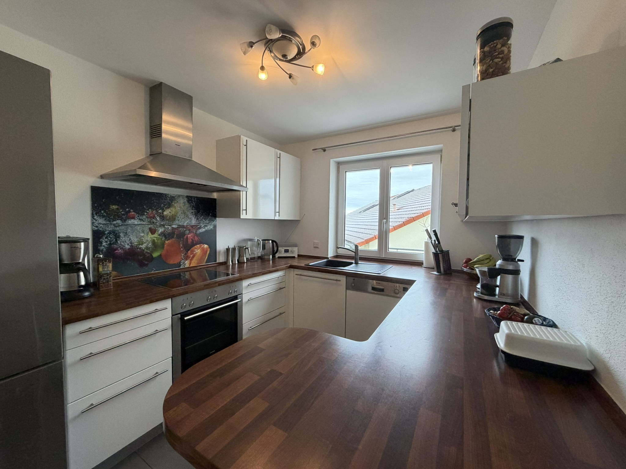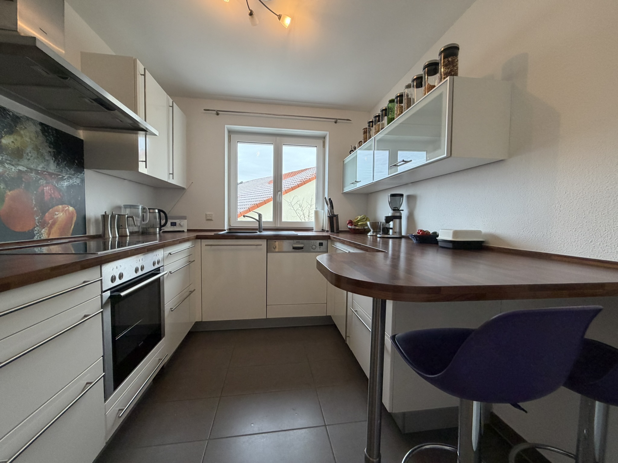Die Einbauküche ist bereits im Kaufpreis enthalten und praktisch gestaltet. Eine separate Speise sorgt für zusätzlichen Stauraum und Ordnung im Alltag.